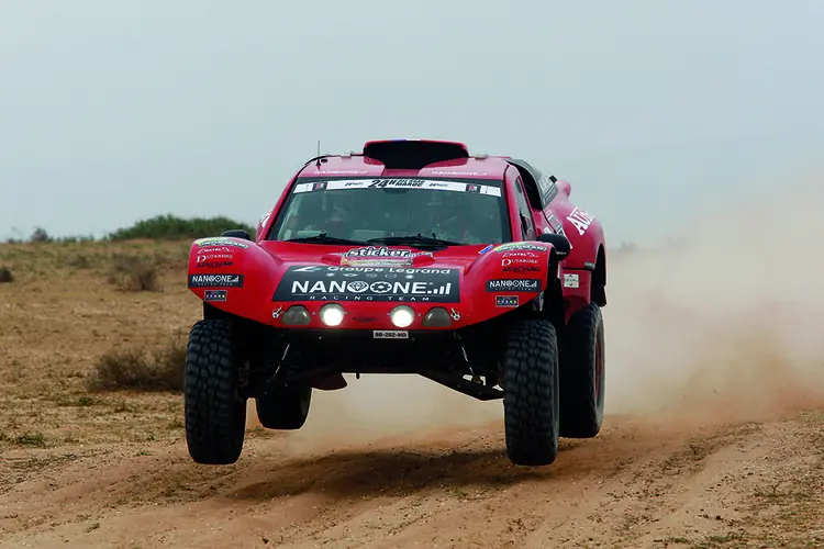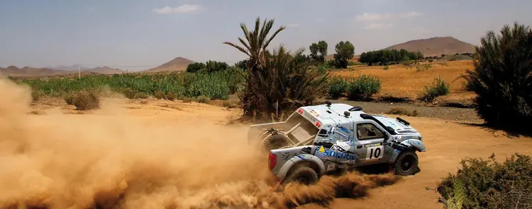 Ici aux couleurs des partenaires de son ancien propriétaire, ce Nissan Overdrive se verra dôté d'un tout nouveau look au mois de mai prochain, aux couleurs de la société Sofrat. Pour cette 10ème édion des 24H Off Road Maroc 2020, le team Sofrat laisse Bowler et Springbok au garage pour venir s'essayer avec ce nouveau bolide.